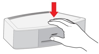 您的 Wave® 音乐系统 IV 在系统顶部集成了触敏控件。将手放在触摸板上一小会可以打开或关闭系统、暂停闹铃或者为第二天重设暂停的闹铃。