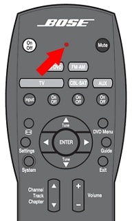 在遥控器上,按住 TV(电视)按钮,直到遥控器 LED 指示灯亮起(约 5 秒)。