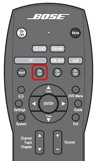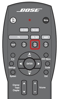 将遥控器指向电视并按下 TV ON/OFF(电视打开/关闭)按钮。如果电视没有响应,则尝试另一个代码。